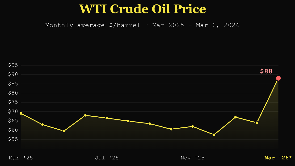 And yet, here we are: Oil prices have skyrocketed in the last few days, amid fears that this conflict will crush supply for weeks, or months. As recently as December, the WTI crude oil price was below $60 a barrel. On Friday, oil prices screamed toward $90. And experts are worried that every week the Iran war continues, the odds of a truly catastrophic disruption to energy production will continue to rise, with potentially devastating consequences for the economy.