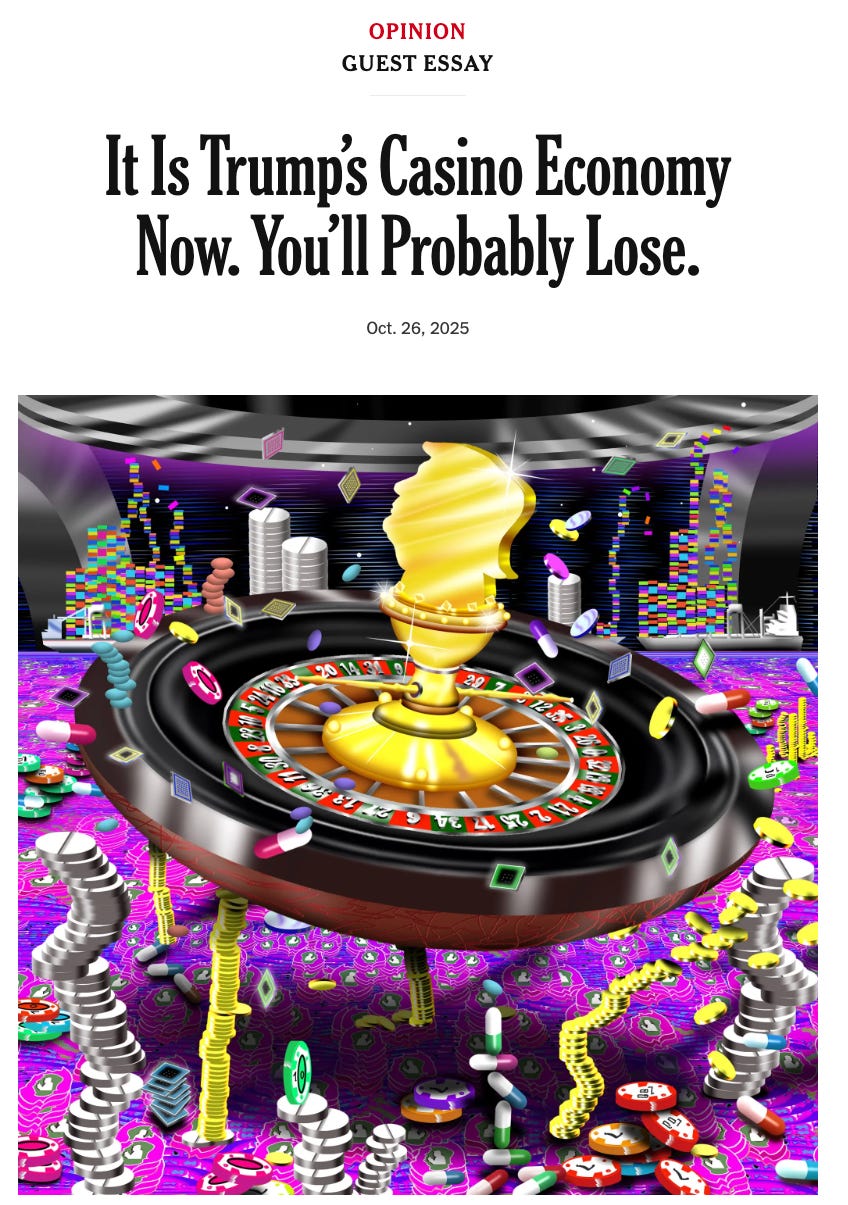 In the last few weeks, some of my favorite economic commentators, including Greg Ip and Kyla Scanlon, have suggested that the US economy is evolving toward what the author Hans-Werner Sinn once called “casino capitalism.”