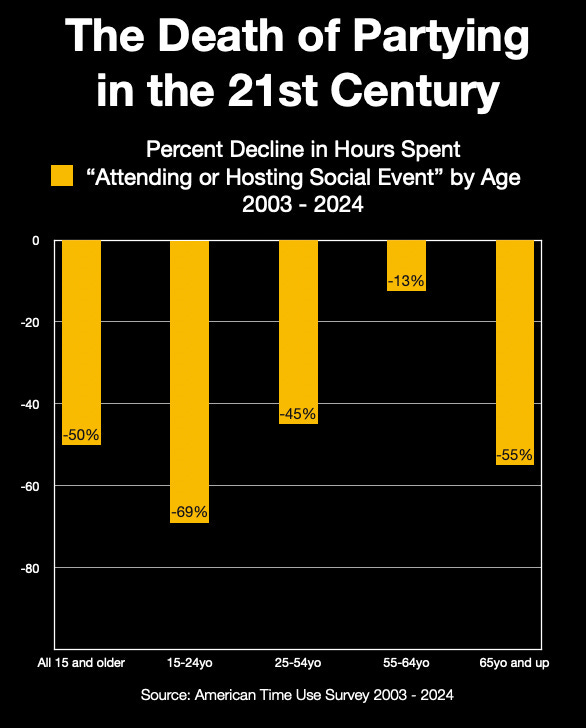 But these healthy behaviors often come at the cost of social connection. With less drinking has come significantly less partying: The share of young people who say they attend or host social gatherings declined by about 70 percent in the last 20 years.