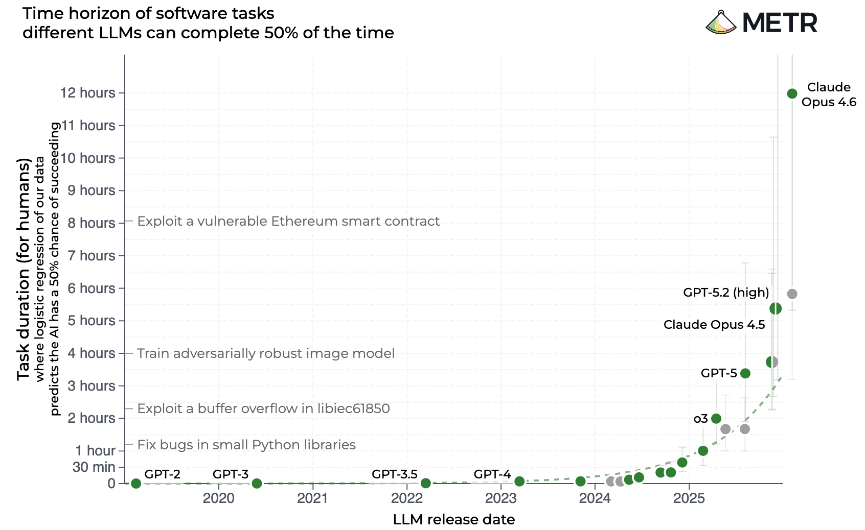 As if following the Moore’s Law of AI, these models seem to be doubling (at least) their ability to do complex and useful tasks every three to four months. When ChatGPT came out in November 2022, the best AI model could finish a 30-second task, like answering a multiple-choice test. This February, METR announced that the latest offering from Anthropic could complete computing tasks that take humans more than 14 hours.