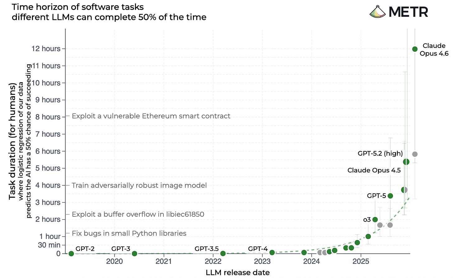 After speaking to METR employees and reading their own explanations of the METR task measures, I’ve determined that there are several major misunderstandings about this chart. This isn’t a mere fact-checking exercise. I think a more realistic and nuanced understanding of this famous chart actually gives us the clearest possible understanding of where AI is headed and why it’s likely to be both more chaotic than AI skeptics believe and less economically impactful than most AI boosters predict.[Paid subscribers can read the full analysis below, plus the final takeaway.]
