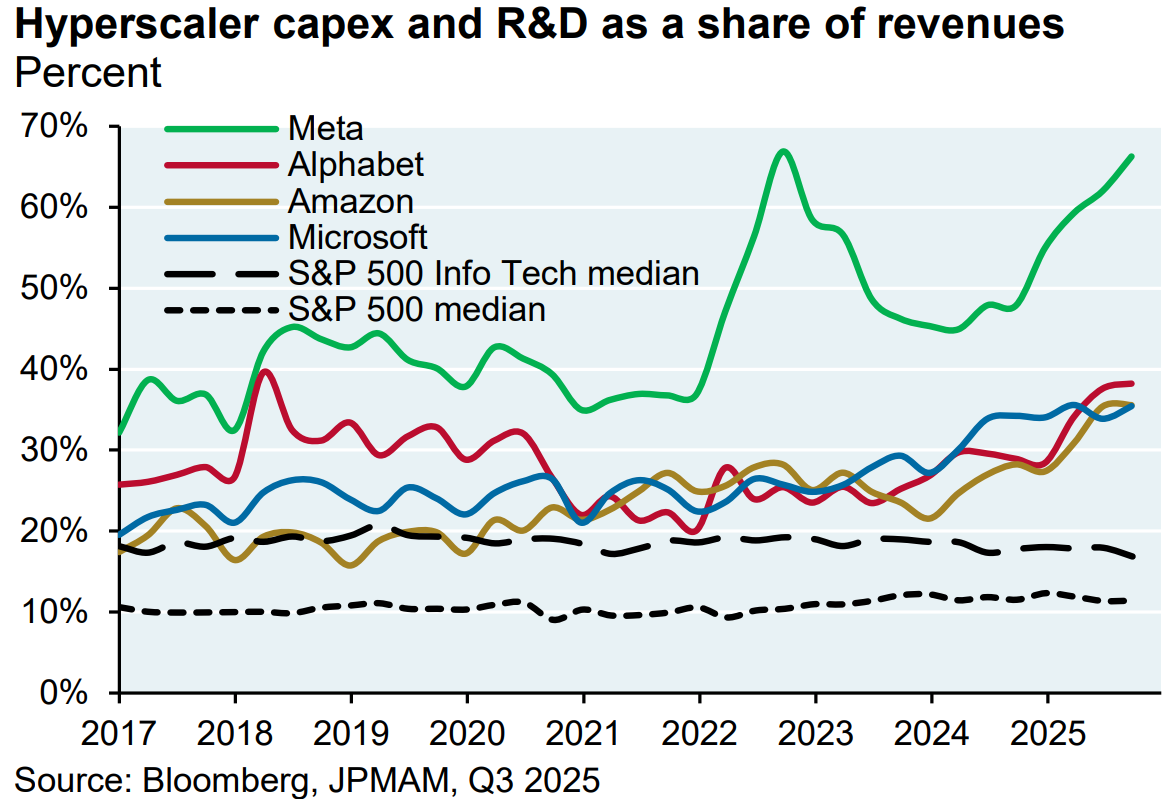 Strikingly, technology writ large is around 60% of the all-U.S. index today. So you’re in a similar situation — this industry has grown to remarkable dominance of the broader equity indices, much like the railroads did. And much like the railroads, it’s become increasingly capital-intensive, which has consequences for how investors are looking at technology companies now versus the halcyon days of the 1970s.